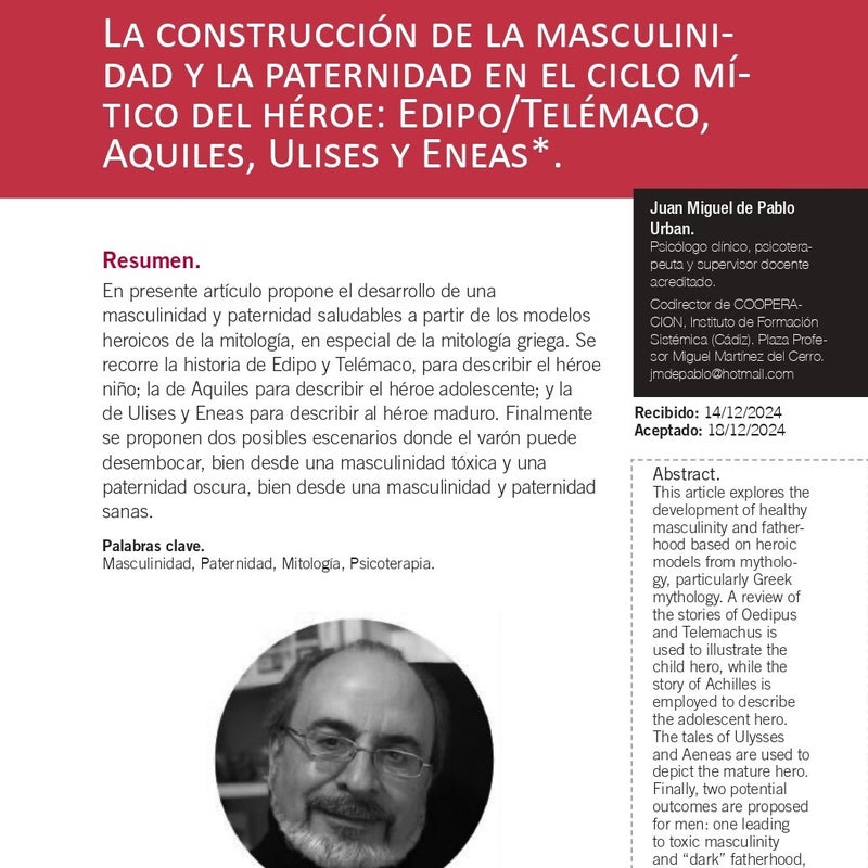 En presente artículo propone el desarrollo de una masculinidad y paternidad saludables a partir de los modelos heroicos de la mitología, en especial de la mitología griega. Se recorre la historia de Edipo y Telémaco, para describir el héroe niño; la de Aquiles para describir el héroe adolescente; y la de Ulises y Eneas para describir al héroe maduro. Finalmente se proponen dos posibles escenarios donde el varón puede desembocar, bien desde una masculinidad tóxica y una paternidad oscura, bien desde una masculinidad y paternidad sanas.