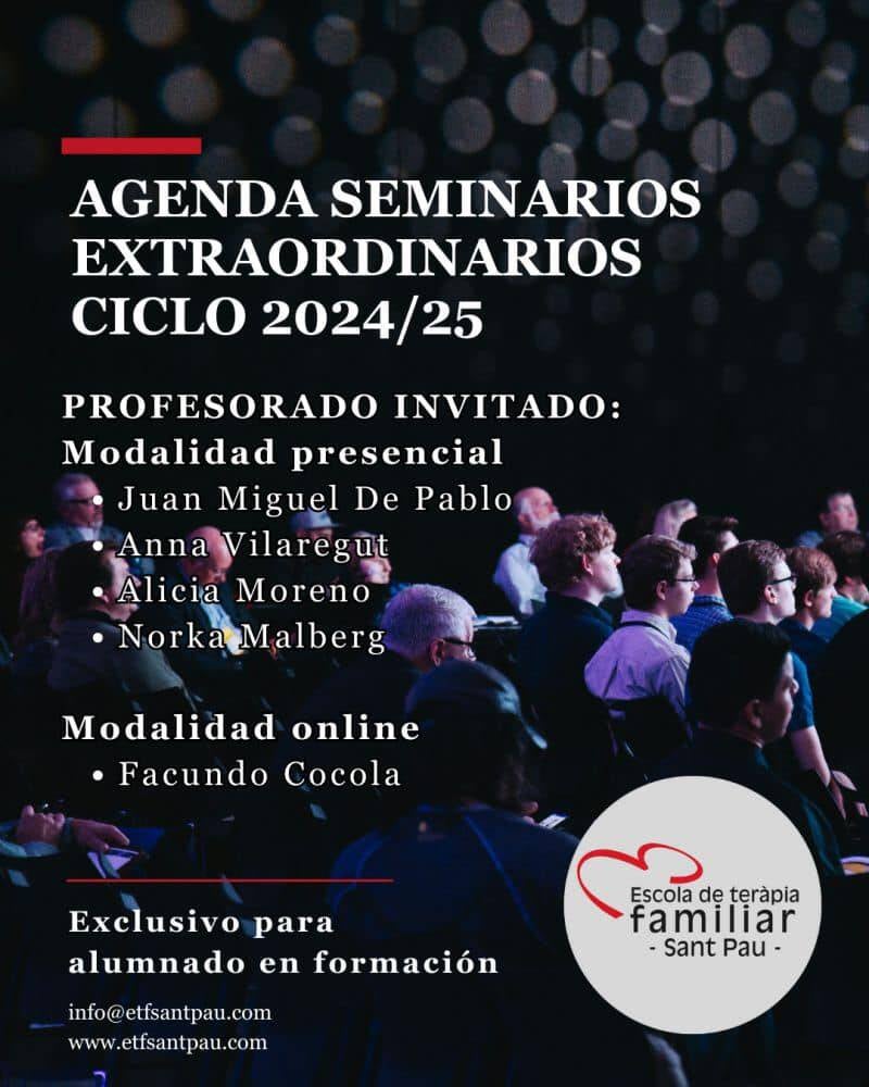 Modalidad Presencial: en la Escuela de Terapia Familiar Sant Pau. 29-30 de noviembre: Juan M. De Pablo