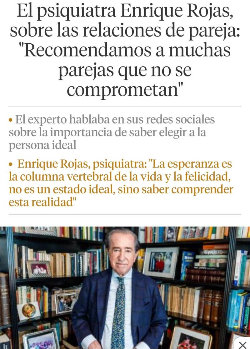 El psiquiatra Enrique Rojas dice que aconseja a determinadas parejas que “no se comprometan”. Comentarios como estos me hacen cuestionar muchas de las afirmaciones, de algunos profesionales, sobre temas tan delicados como son las relaciones de pareja. Este asesoramiento racional sobre el posible futuro de una pareja, sobre lo que deberían hacer o sobre la elección ideal, muestra un desconocimiento absoluto del funcionamiento de la pareja como sistema.