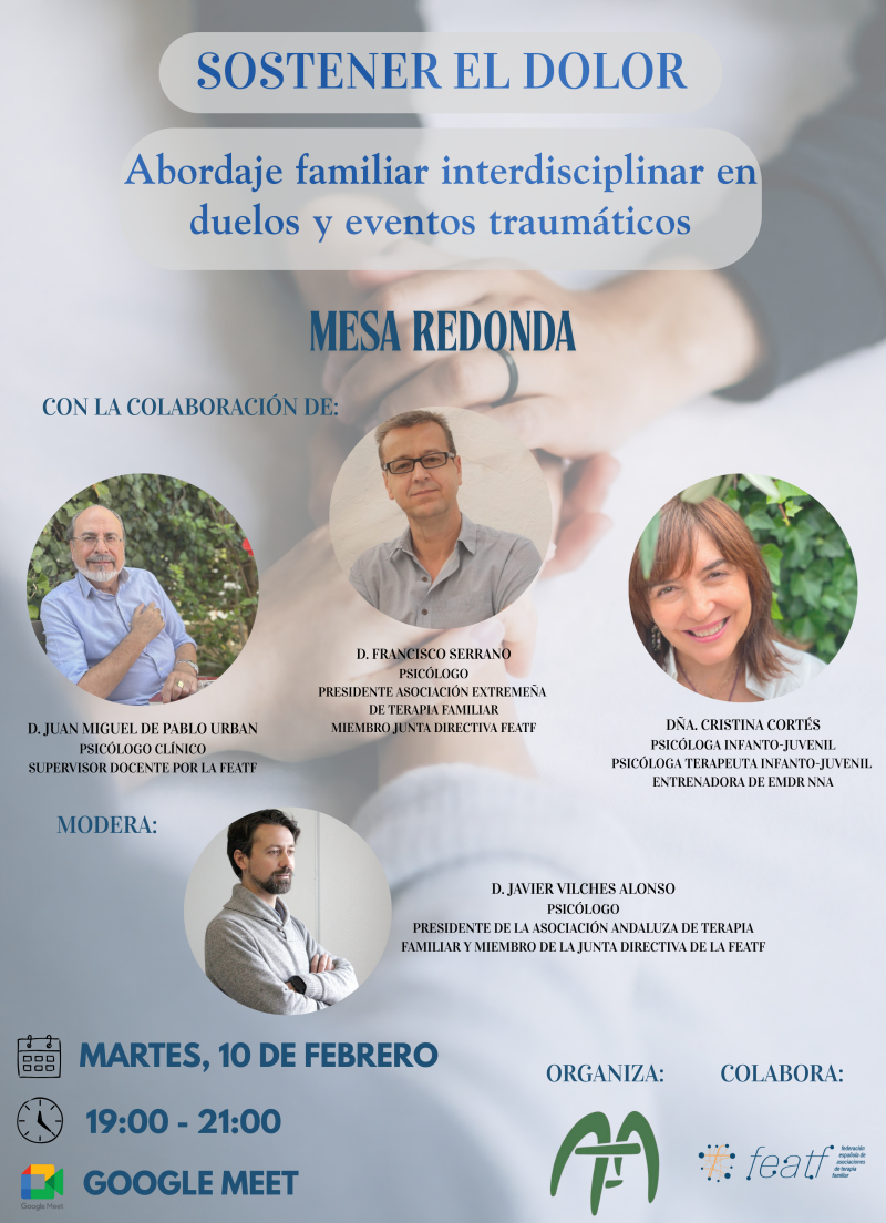 Desde la Asociación Andaluza de Terapia Familiar abrimos este espacio de encuentro para reflexionar, compartir mirada clínica y dialogar sobre el abordaje familiar interdisciplinar en situaciones de duelo y trauma, a raíz de lo vivido recientemente en Adamuz.